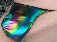 ショーツ越しにもわかる、メリハリのある立派な息子さんをお持ちでうらやましい。私の息子は恥ずかしがり屋で、すぐに隠れようとします。11と12…いい色のTフロント・ハーバックショーツですね。それから、ぬめり感のある生地もとてもいい。今後も画像を楽しみにしています。少し変わったアングルで1枚…