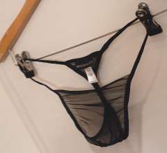 うさぎとかめさん、画像とコメントありがとうございます。これもまた、透け透けですね。BBSの方でフロント側を拝見すると、予想通りの超危険画像、ほぼ御開帳というところでしょうか? 私が所有しているTバックショーツの数は少なく、冬場の屋外撮影の勇気と根性もないので、趣向を凝らした撮影は難しい状態です。そこで、今日穿いているショーツを記録していくレベルの投稿と、割り切っていこうと思います。当然、同じショーツが繰り返し登場することになりますが、ご勘弁ください。「あの日は、何を穿いていたかな?」と、私的な備忘録になってしまうと思います。興味がない方は、完全無視無視(でんでんむしむし…)でスルーしてください。今年も残すところ2週間を切りました。気持ちも新たに新年を迎えられるように、新しいショーツを注文したいところです。うちの財務大臣と補正予算の交渉に入ります。 画像は、忘年会の翌朝(今)のショーツです。昨日は、仕事から帰ってシャワーを浴びて、このTMのTバックショーツに穿き替えて忘年会に出かけました。帰宅後は、そのまま寝てしまったので、正確には、昨日から穿いているショーツを撮影した画像です。一昨日夜に剃毛したままなので、鼠径部を中心に陰毛が伸び始めてみっともない限りです。やはり、毎日剃らないとダメですね。今からシャワーを浴びて処理します。