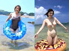 海辺で全裸露出する露出狂の「麻夕子」さん。
