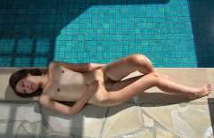 プールサイドで全裸を晒す「しょうたママ」さん。