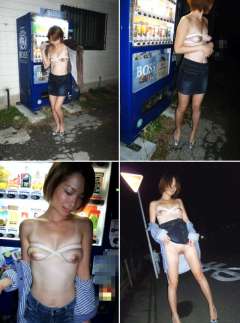 自販機の前で露出する「そら」さん。