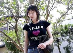 カジュアルな服装の「久美子」さん。