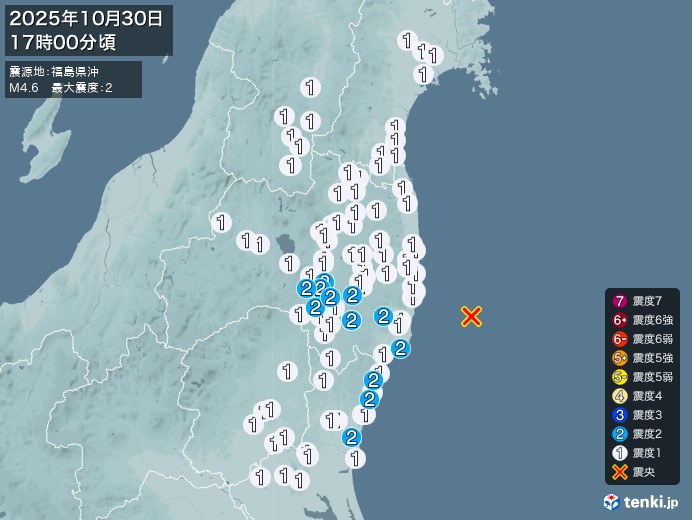 福島県沖地震、https://earthquake.tenki.jp/bousai/earthquake/center/289/